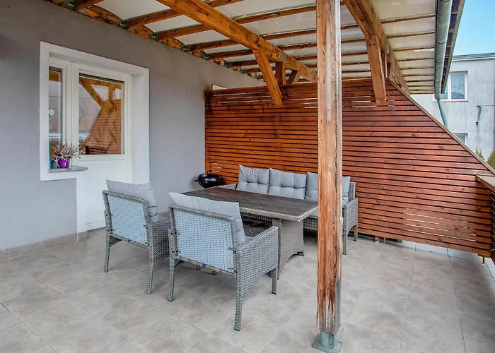 Tento 1-ložnicový apartmán je situován ve čtvrti Sobieszewo. Jídla polské kuchyně jsou podávána v restauraci Tawerna Delfin.